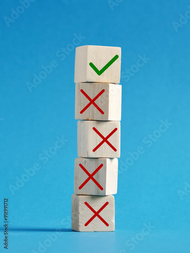 Wall mural stack of wooden cubes showing the concept of right and wrong choices - Wall murals Wall mural stack of wooden cubes showing the concept of right and wrong choices - Wall murals