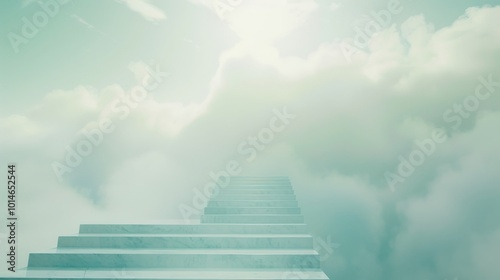The watermark will not be included on Wall mural.: Stairway to the skies amidst billowing clouds, illuminated by ethereal light, creating a celestial a