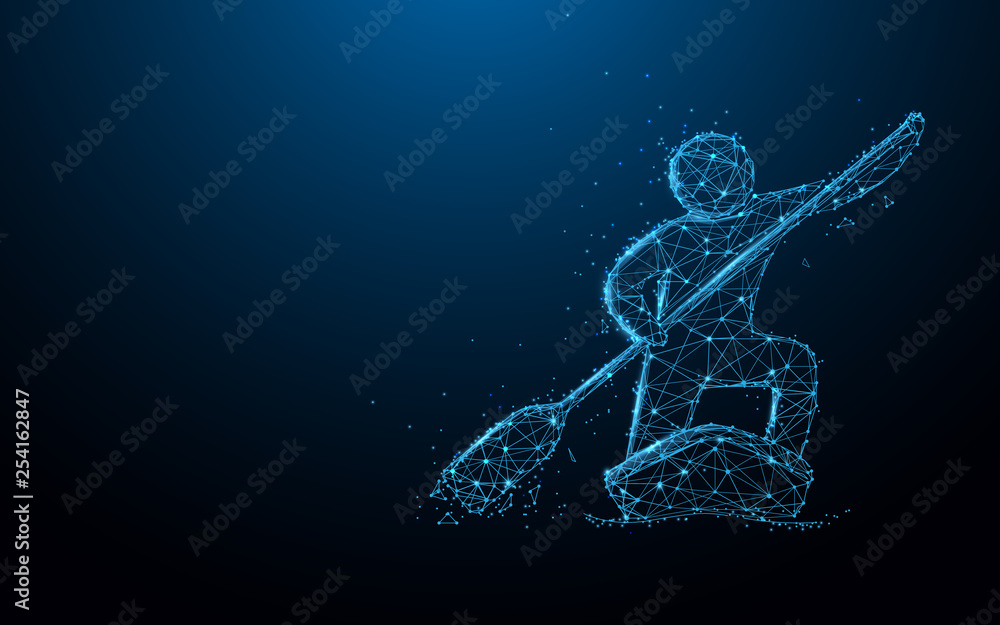 Stand up paddle boarding from lines, triangles and particle style design - illustration vectorWall mural