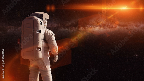 The watermark will not be included on Wall mural.: Standing astronaut looking into empty space