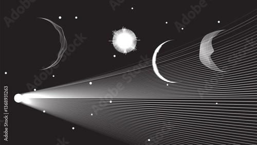 Wall mural : Star and moon and comet in outer space - futuristic landscape, with lines texture - space landscape w