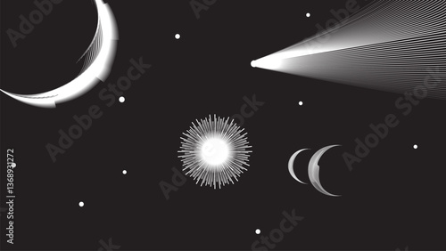 Wall mural : Star and moon and comet in outer space - futuristic landscape, with lines texture - space landscape w