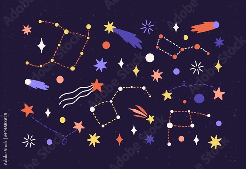 Wall mural star map with constellations and comets in outer space. cosmic starry night sky with celestial objec - Wall murals Wall mural star map with constellations and comets in outer space. cosmic starry night sky with celestial objec - Wall murals