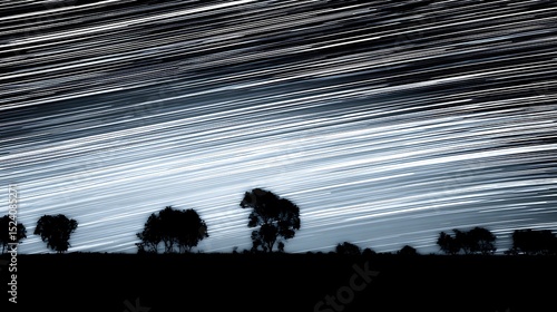 The watermark will not be included on Wall mural.: Star trails and silhouetted tree line