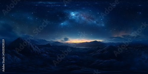 The watermark will not be included on Wall mural.: Starry night sky photorealistic landscape twilight gradient 360 degree panorama cosmic scene