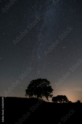 The watermark will not be included on Wall mural.: Starry sky over fields with tree silhouette in cornwall, uk