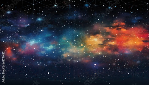 The watermark will not be included on Wall mural.: Starry sky with connecting lines and bright dots against a backdrop of colorful clouds - abstract bac