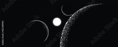 Stars and exoplanet in outer space - futuristic landscape, with noise texture - night landscape with Wall mural