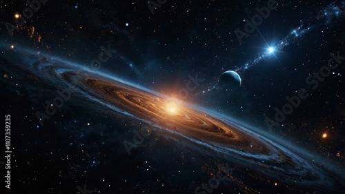 Wall mural : Stars and flight through space - green and shining nebula - artistic concept 3d illustration for space