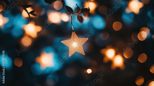 The watermark will not be included on Wall mural.: Stars casting sharp shadows on a flat, blue bokeh design -
