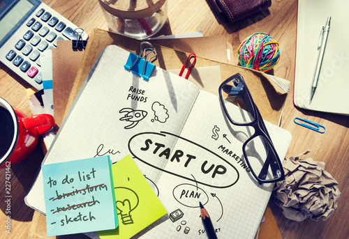 Wall mural start up drawn in a notebook on a messy table - Wall murals Wall mural start up drawn in a notebook on a messy table - Wall murals