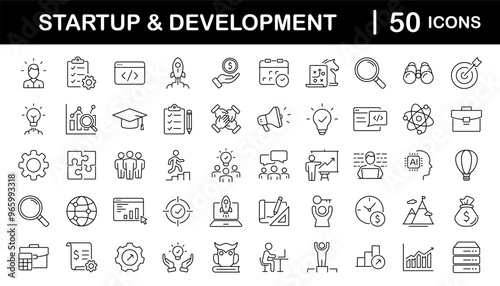 Wall mural startup and development set of web icons in line style. development icons for web and mobile app. co