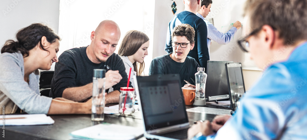 Wall mural startup business and entrepreneurship problem solving. young ai programmers and it software develope - Wall murals Wall mural startup business and entrepreneurship problem solving. young ai programmers and it software develope - Wall murals