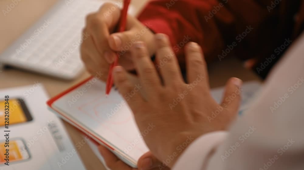 The watermark will not be included on Wall mural.: Startup company employee planning for user interface prototype for mobile application or website in