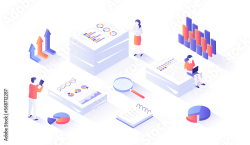 Wall mural : Statistics, document analysis, data collection - research and information processing - stacks of docum