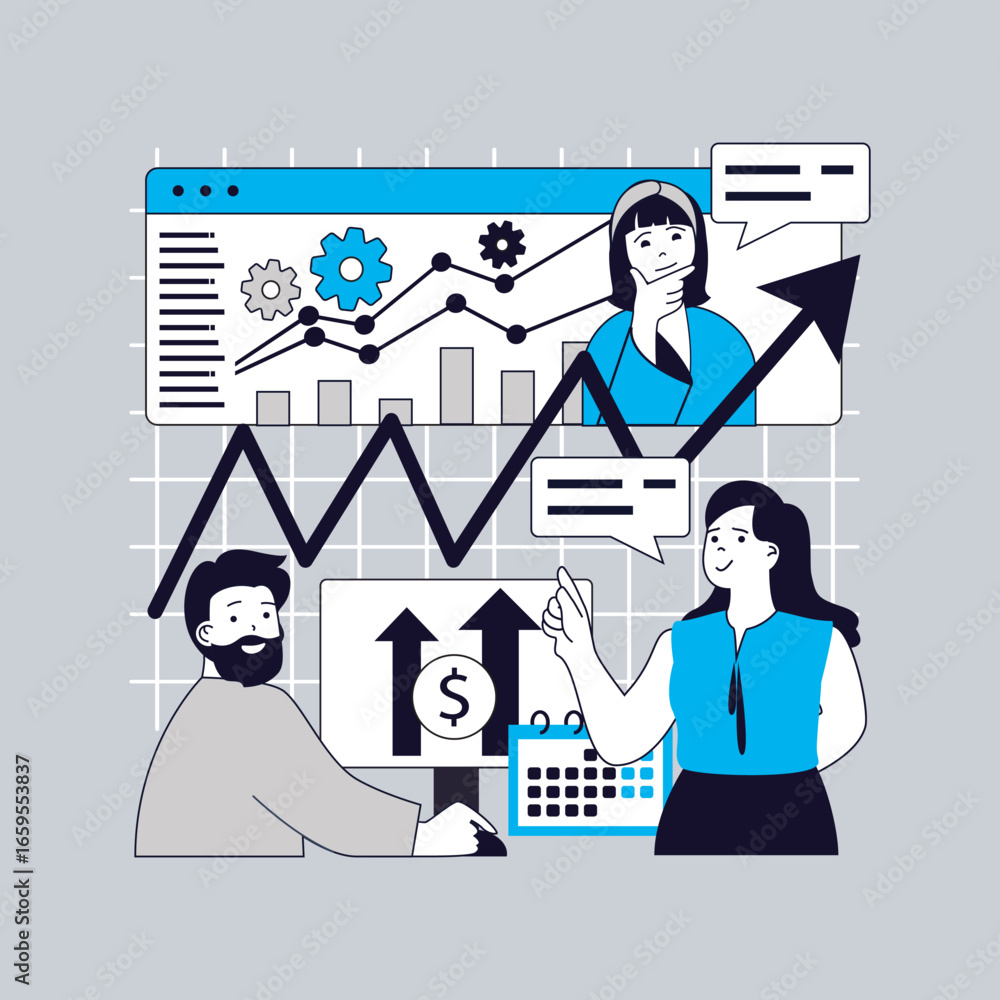 Wall mural statistics and analytics concept for modern web design. people monitoring datum results online, exam - Wall murals Wall mural statistics and analytics concept for modern web design. people monitoring datum results online, exam - Wall murals