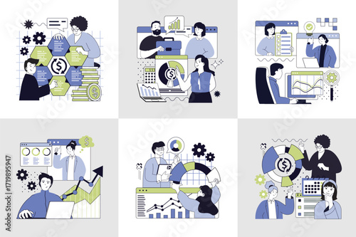 Wall mural statistics and analytics concept set for web design. collection with people making research for fina - Wall murals Wall mural statistics and analytics concept set for web design. collection with people making research for fina - Wall murals