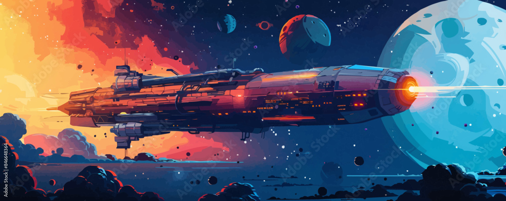 Wall mural steampunk airship soaring through the clouds vector flat minimalistic isolated - Wall murals Wall mural steampunk airship soaring through the clouds vector flat minimalistic isolated - Wall murals