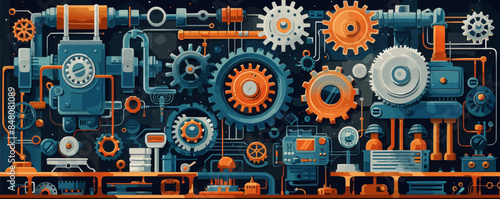 The watermark will not be included on Wall mural.: Steampunk gears and cogs in a mechanical device vector flat minimalistic isolated illustration