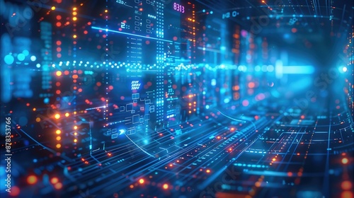 Wall mural stereoscopic data chart, visual data screen, data table, visual data design, technical style, blue a - Wall murals Wall mural stereoscopic data chart, visual data screen, data table, visual data design, technical style, blue a - Wall murals