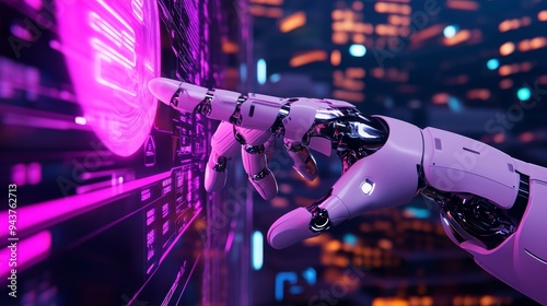 Wall mural stock futuristic design concept when an index finger is pressed on a button. virtual holographic int