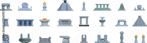Wall mural stone altar icons set. discover a captivating collection of ancient mayan and aztec inspired archite
