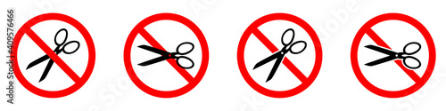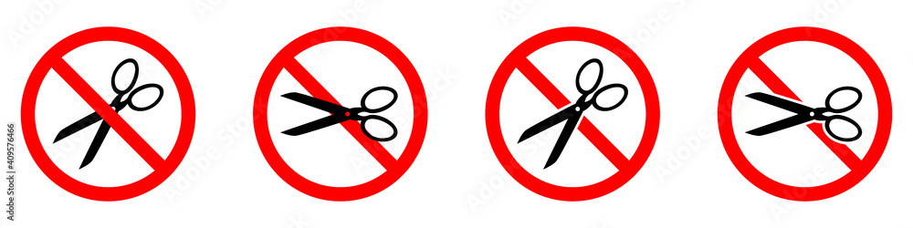 Wall mural : Stop or ban red round sign with scissors icon - scissors is prohibited