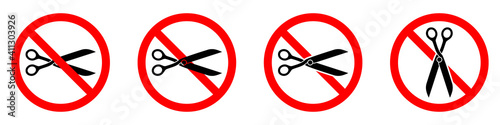 Wall mural : Stop or ban red round sign with scissors icon - scissors is prohibited