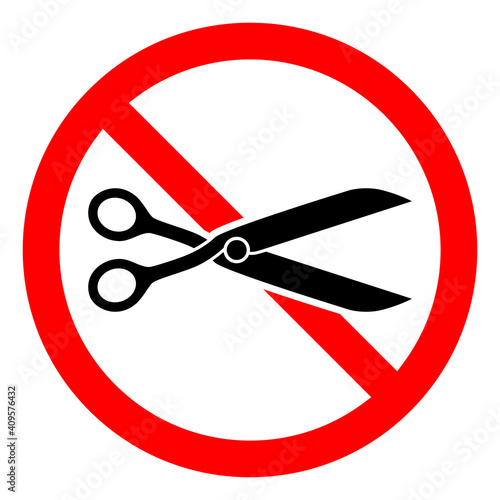 Wall mural : Stop or ban red round sign with scissors icon - scissors is prohibited