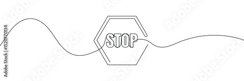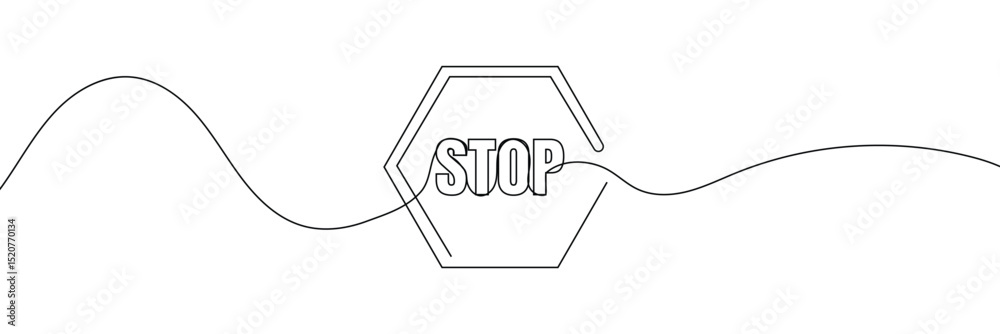 Wall mural stop text in one line drawing. one line drawing background. continuous line drawing of stop sign. ve