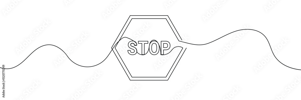 Wall mural stop text in one line drawing. one line drawing background. continuous line drawing of stop sign. ve