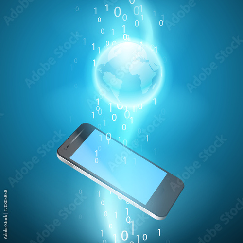 Wall mural stream of binary code with mobile phone