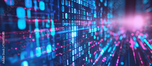 Wall mural streaming data binary data on computer screen background, numeral matrix, blurred background, data p