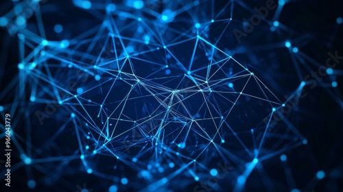 Wall mural : Streaming data particles in a vibrant blue digital network symbolizing digital communications and cu