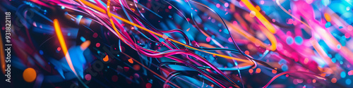 Wall mural : Streaming neon - cyberpunk technical background abstraction ui ux modern trendy design - place for tex