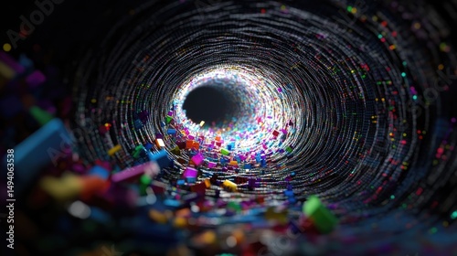 Wall mural : Streams of colored light spiral into a digital vortex, forming a futuristic tunnel of flowing data a