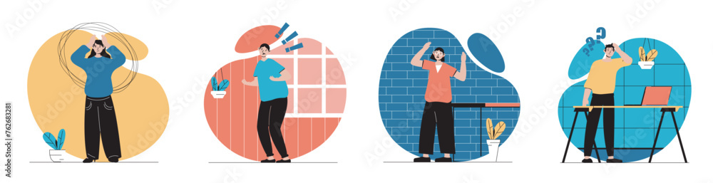 Wall mural stress expression concept with people scenes set in flat web design. bundle of character situations  - Wall murals Wall mural stress expression concept with people scenes set in flat web design. bundle of character situations - Wall murals