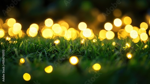 String lights illuminate green grass at night creating a beautiful bokeh effect in the background hiWall mural