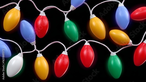 Wall mural string of christmas lights with many different colors. the lights are hanging from the ceiling and a