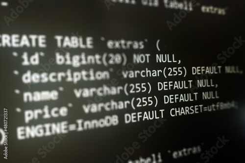 Wall mural structured sql code on monitor. sql code on a dark background development concept - Wall murals Wall mural structured sql code on monitor. sql code on a dark background development concept - Wall murals