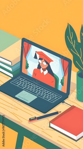 The watermark will not be included on Wall mural.: Student attending a virtual classroom on laptop highlighting the accessibility and flexibility of on