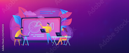 Wall mural students with laptop and lector in front of interactive board. digital classroom landing page. blend - Wall murals Wall mural students with laptop and lector in front of interactive board. digital classroom landing page. blend - Wall murals