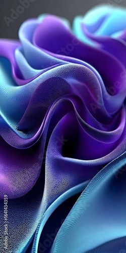 Wall mural : Stunning abstract 3d rendering of flowing fabric waves with purple and blue gradient background