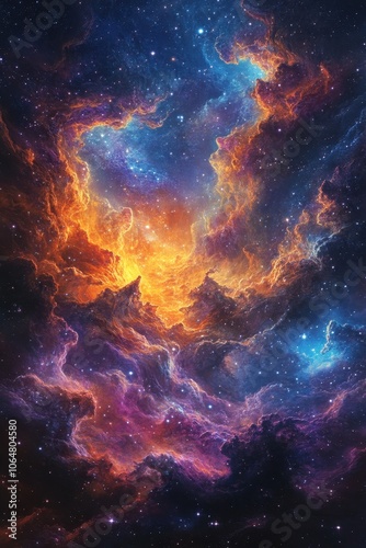 The watermark will not be included on Wall mural.: Stunning cosmic nebula with vibrant colors and intricate patterns in deep space captured in high res