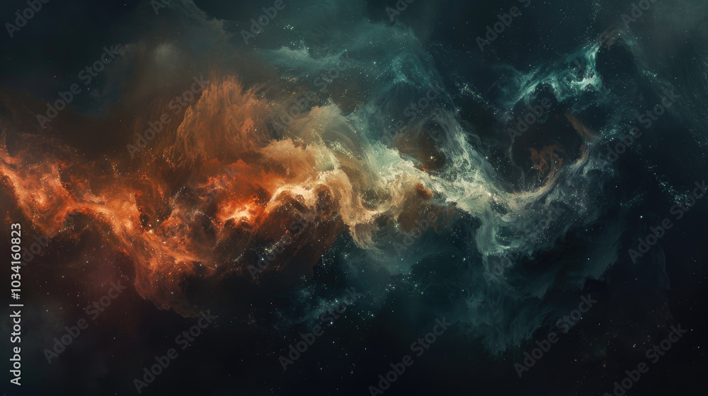 The watermark will not be included on Wall mural.: Stunning cosmic nebula with vibrant colors and swirling patterns in deep space captured in high reso