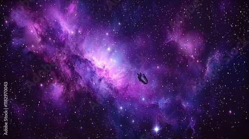 Wall mural stunning cosmic scene with a spaceship flying through a colorful nebula in deep space