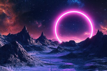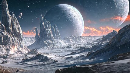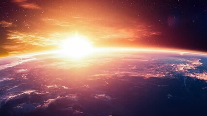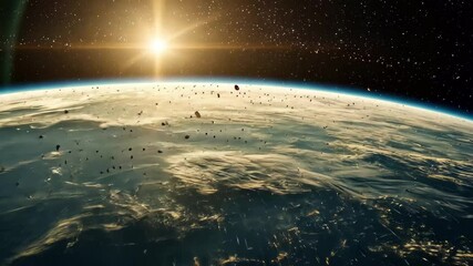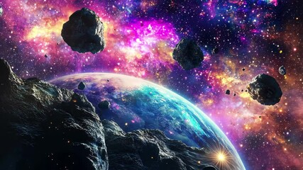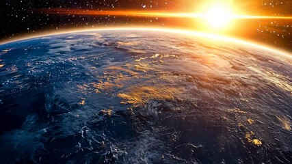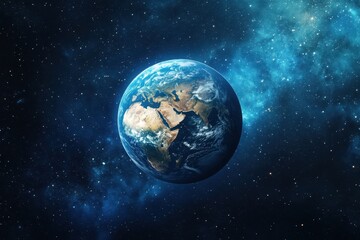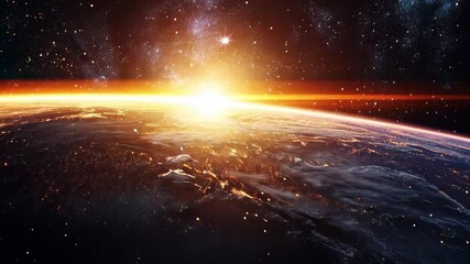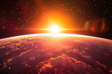 Wall mural stunning depiction of a planet at dawn with a galaxy backdrop and distant celestial bodies illuminat