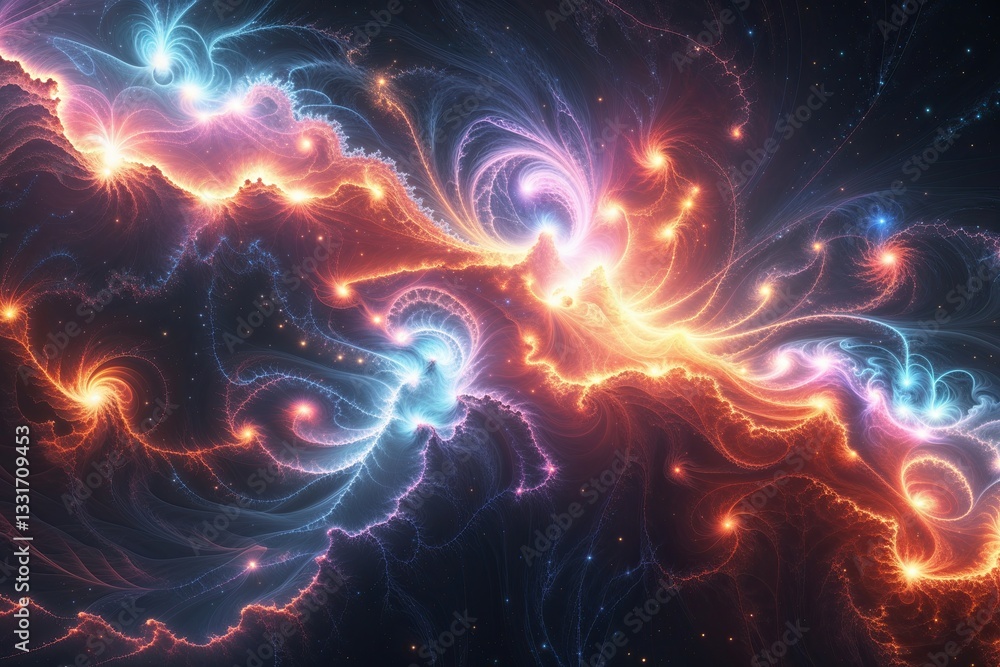 The watermark will not be included on Wall mural.: Stunning luminous fractal graphics portraying the universe in striking colors and dynamic light