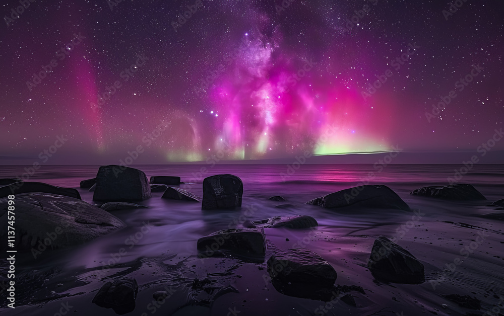 The watermark will not be included on Wall mural.: Stunning night sky with the milky way stretching across a starry backdrop - ideal for nature and astr