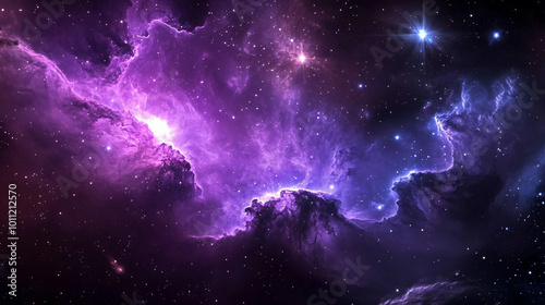 The watermark will not be included on Wall mural.: Stunning purple nebula in deep space with bright stars and cosmic clouds - captivating outer space sc